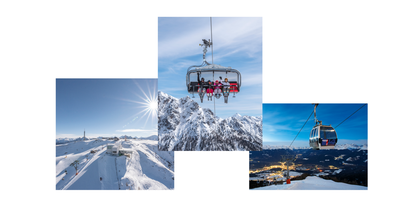 While there may be more imposing mountains, Kronplatz is undoubtedly the best place to spend a fantastic skiing holiday. With around 120 kilometres of slopes and 31 lifts, the 2,275 m high local mountain of Bruneck is simply the skiing mountain for discerning skiers and snowboarders. Those who love these sports will enjoy the long valley descents in 3 directions and the sunny, spacious plateau with an impressive 360° panoramic view at the summit.